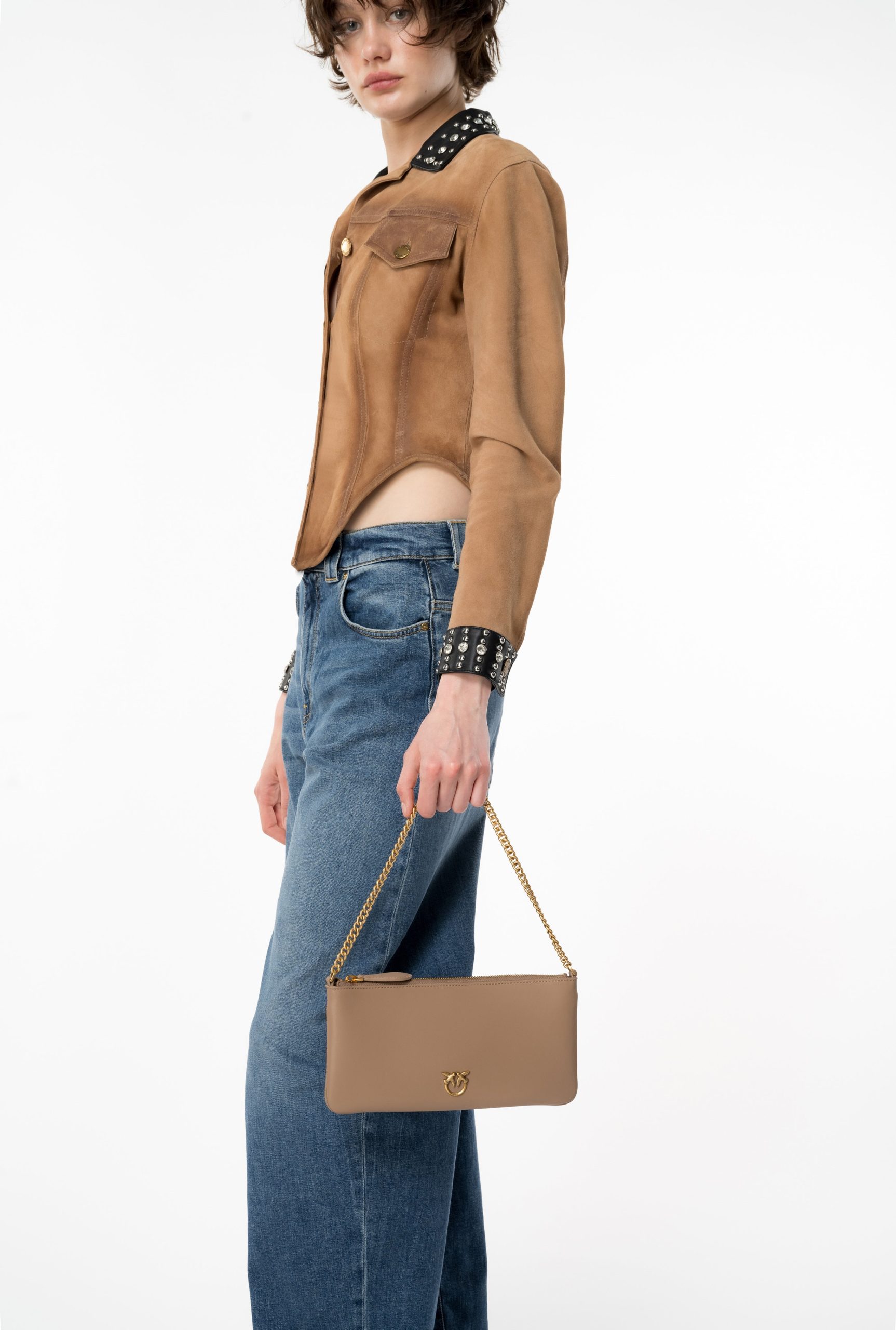 Flat τσάντα χιαστί από μαλακό δέρμα με πολύ απαλή υφή με μακρόστενο σχήμα.