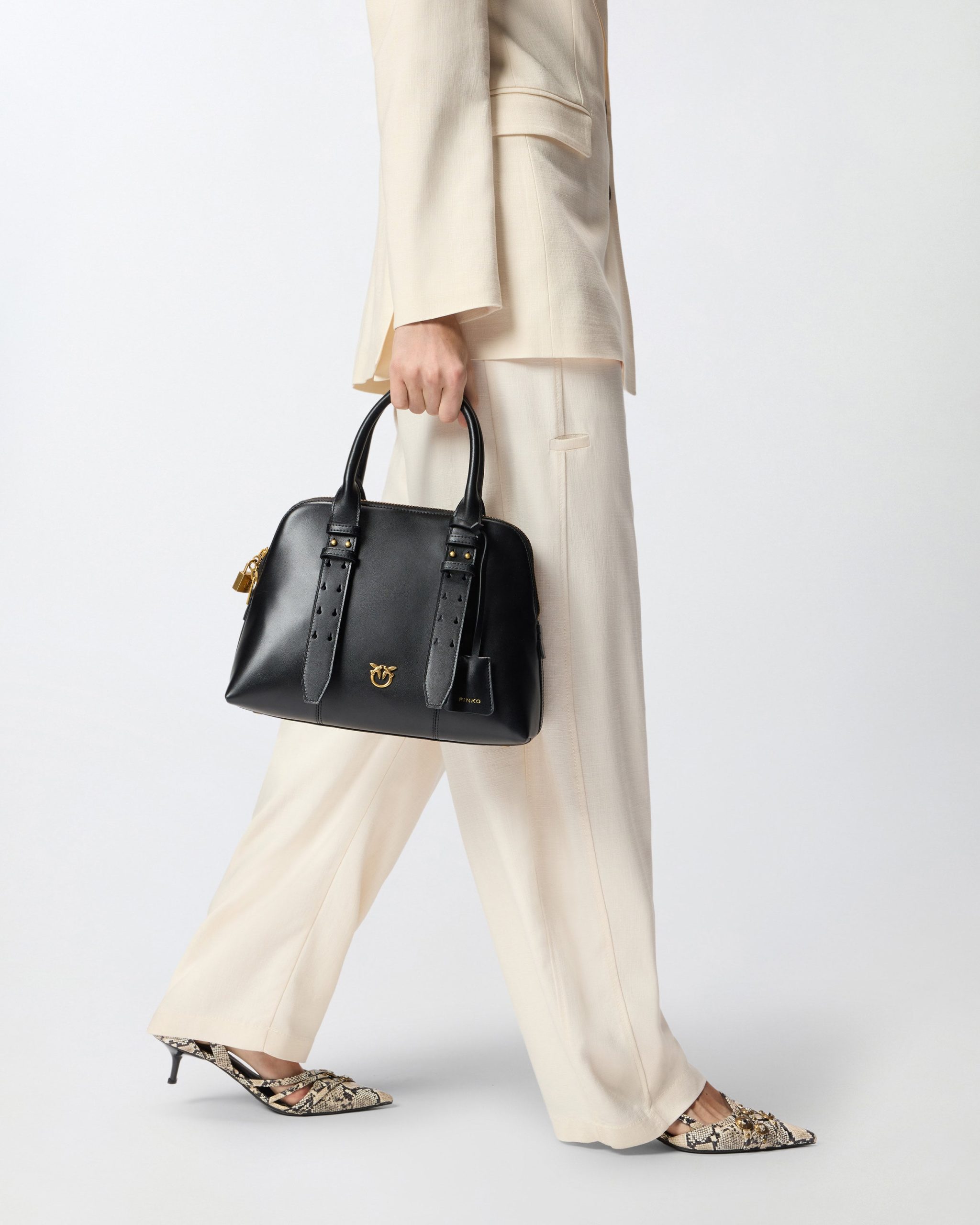 Καθημερινή τσάντα μεσαίου μεγέθους από απαλό δέρμα μοσχαριού με μεταλλικές λεπτομέρειες