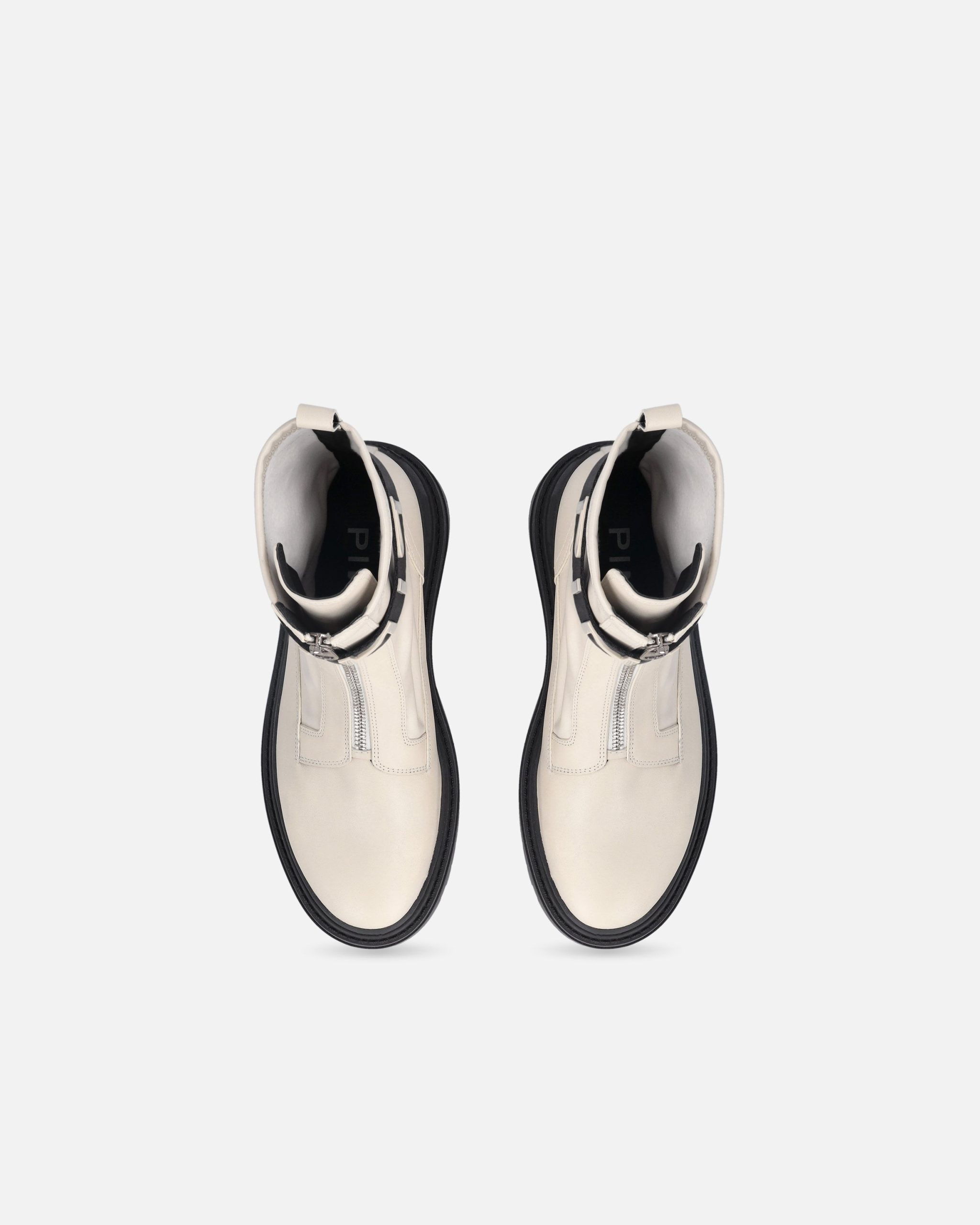 Δερμάτινα μποτάκια μέχρι τον αστράγαλο με λαστιχένια τρακτερωτή σόλα πλατφόρμα, δερμάτινη φόδρα, κλείσιμο με φερμουάρ μπροστά και θηλιά πίσω για να μπορούν να φορεθούν εύκολα.