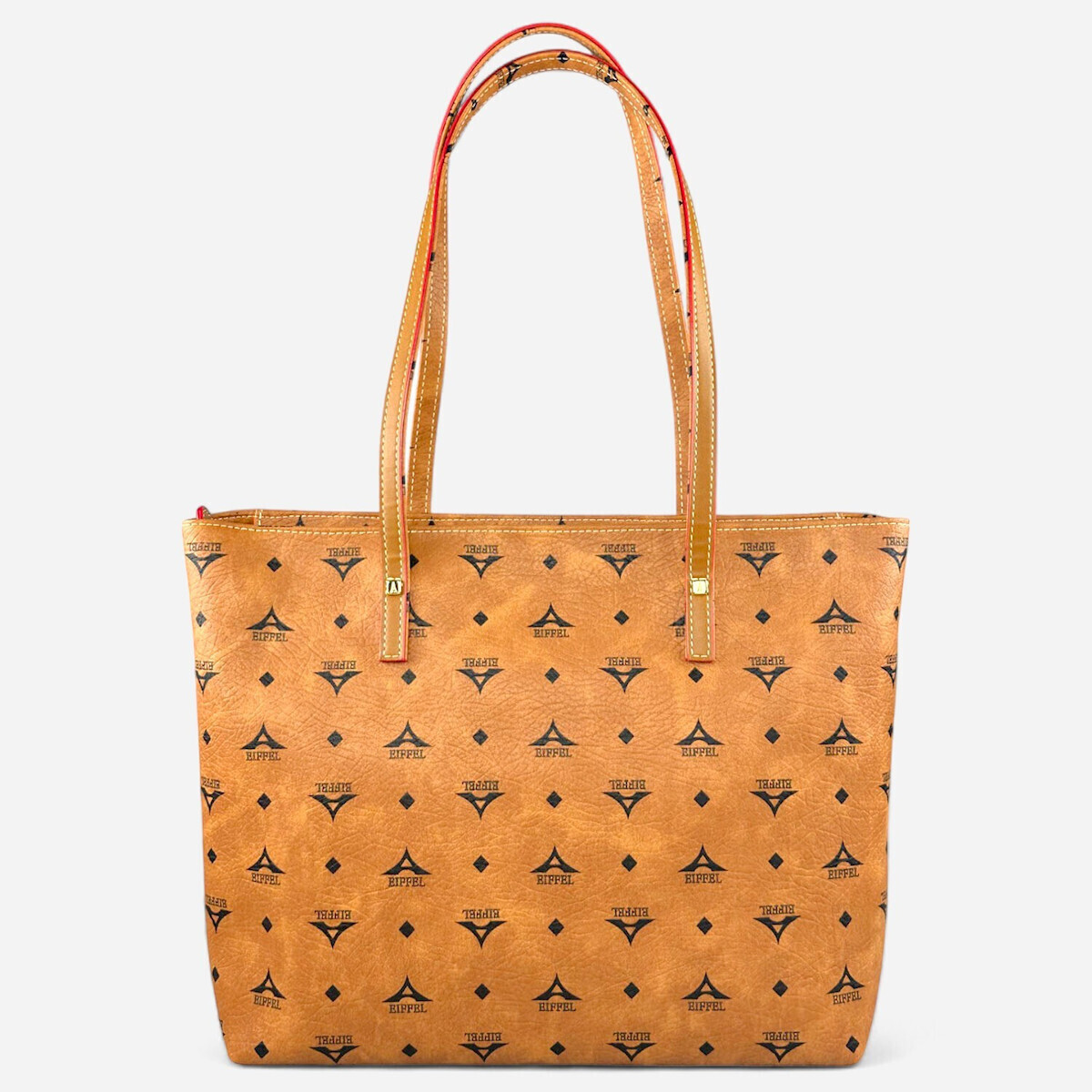 Τσάντα γυναικεία ώμου La Tour Eiffel με χρυσό μεταλλικό λογότυπο σε χρώμα ταμπα από συνθετικό με δερμάτινες λεπτομέρειες υψηλής ποιότητας και αντοχής.